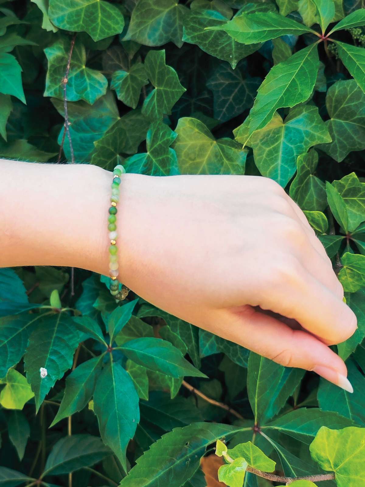 Ręcznie wykonana bransoletka z koralikami z zielonego agatu mieni się subtelnym blaskiem, tworząc wyjątkową kompozycję na Twoim nadgarstku. Bransoletka doskonale sprawdzi się na co dzień, dodając charakteru zarówno do casualowych, jak i bardziej eleganckich stylizacji. Zielony agat to kamień, który symbolizuje harmonię, równowagę i spokój. Noszenie bransoletki z tym minerałem może pomóc Ci odnaleźć wewnętrzną równowagę i zbalansować emocje.