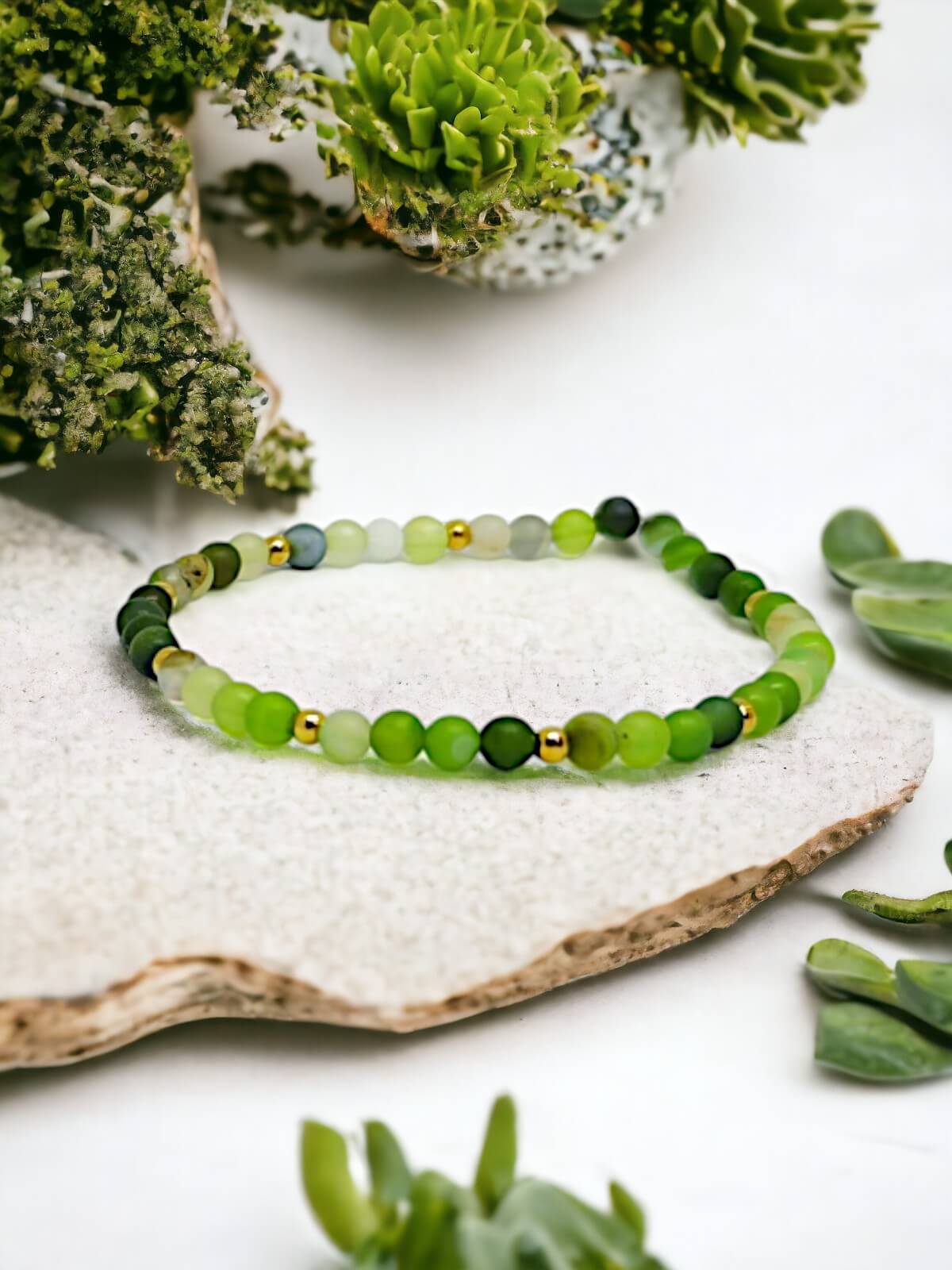 Szukasz biżuterii, która połączy w sobie piękno natury z modnym designem? Bransoletka z koralikami z zielonego agatu to idealny wybór dla Ciebie!