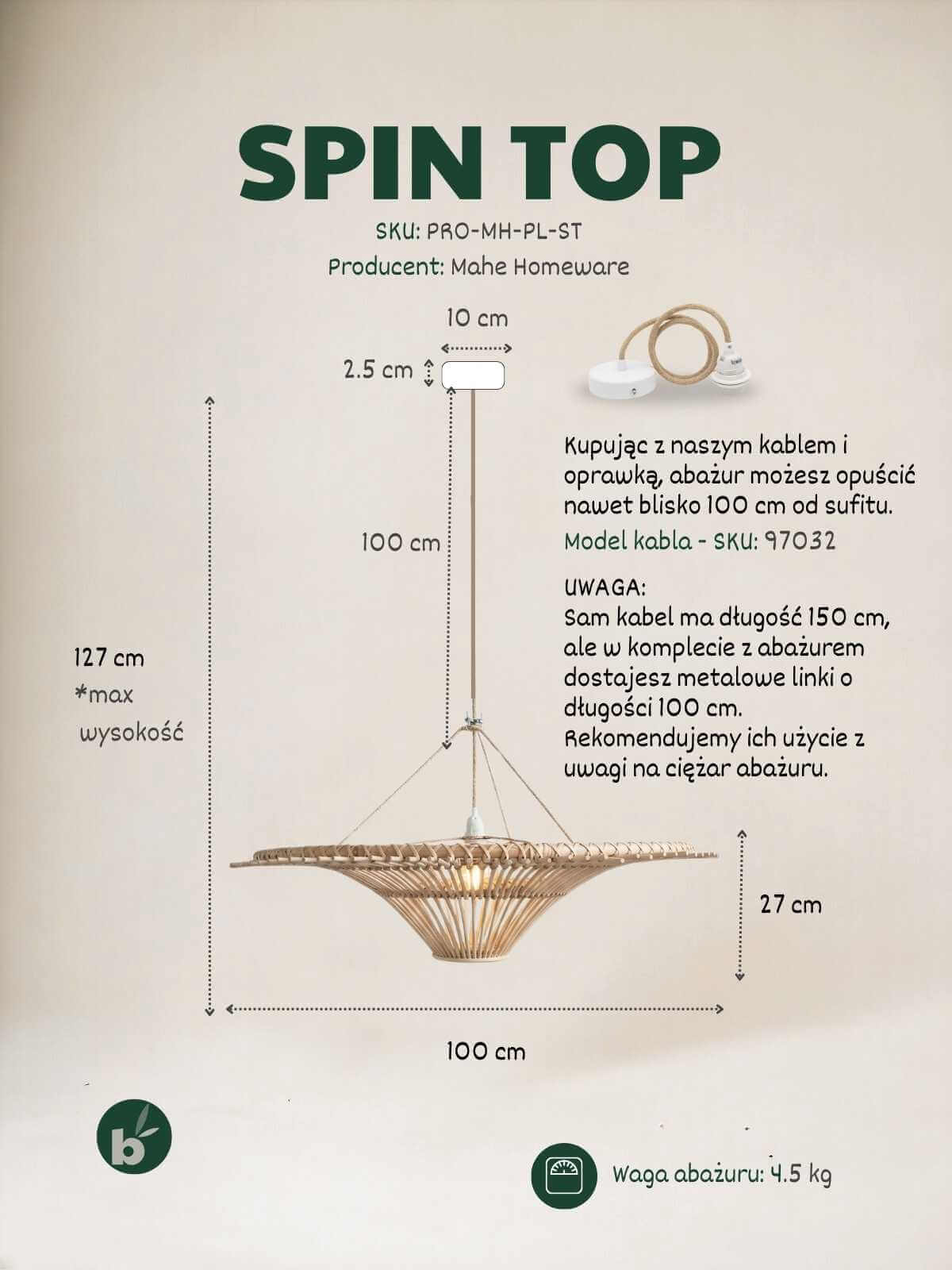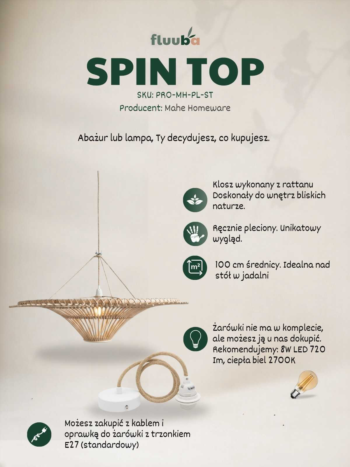 - Lampę SPIN TOP 100 cm (zabezpieczoną i usztywnioną, by nie straciła kształtu).