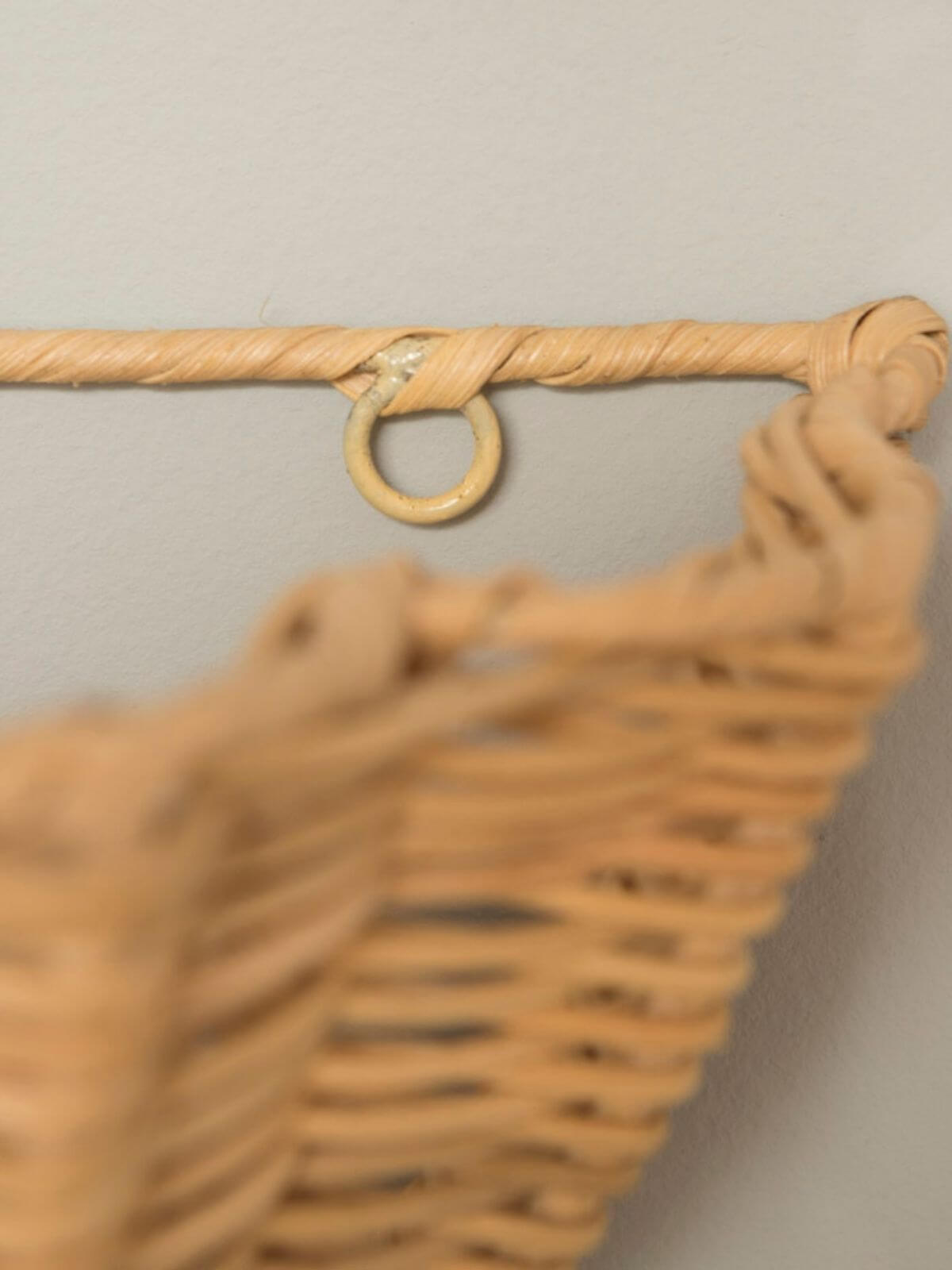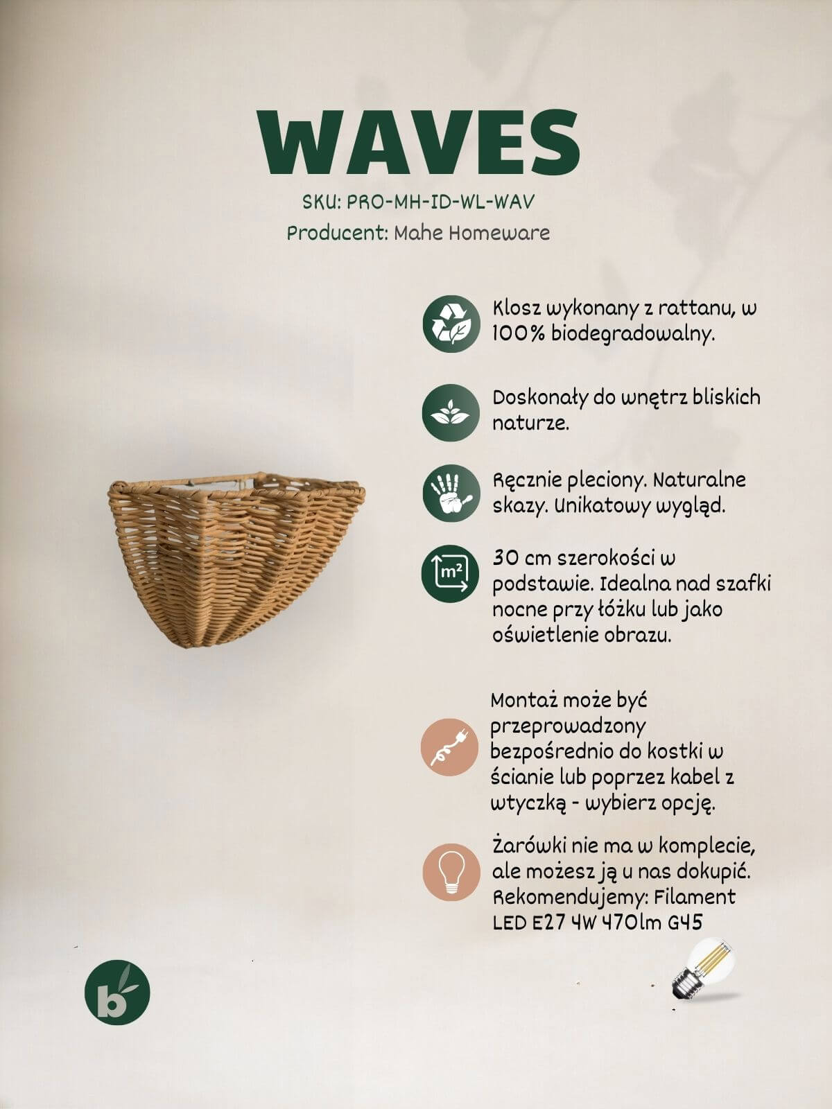 Kinkiet fale Waves z rattanu na tle jasnej ściany.