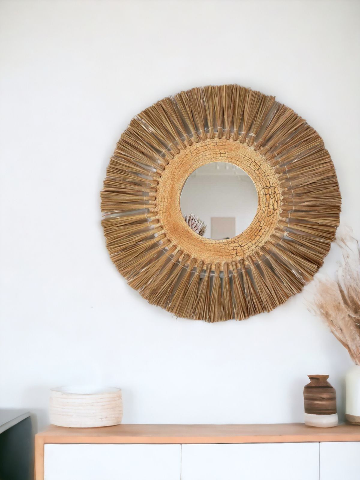 Wybierz nasze okrągłe lustro boho Alang Roung i ciesz się niepowtarzalnym urokiem w Twoim domu lub zobacz inne lustro słońce.