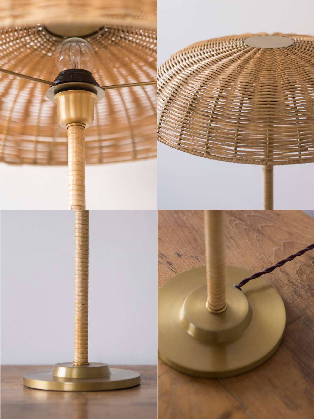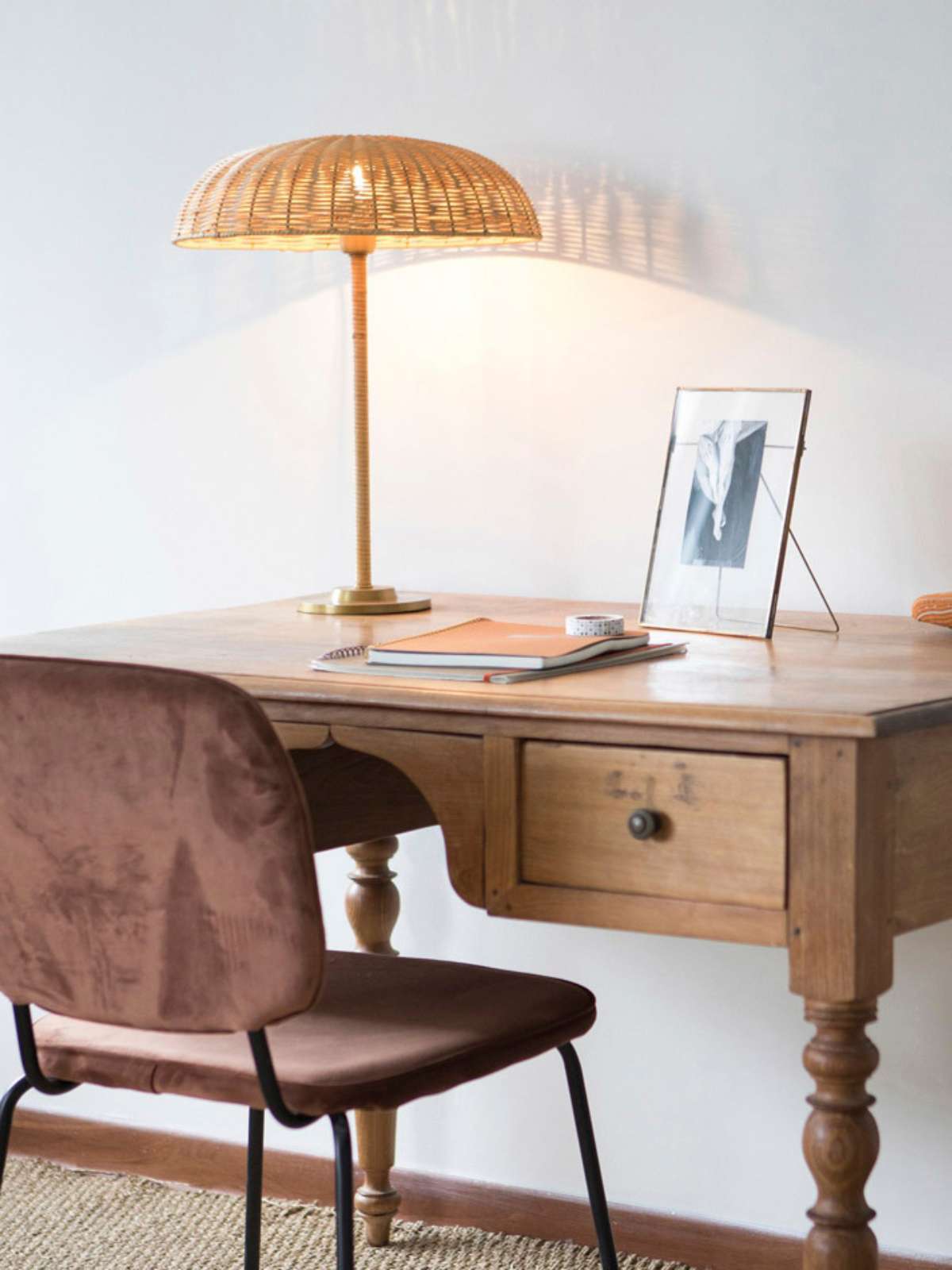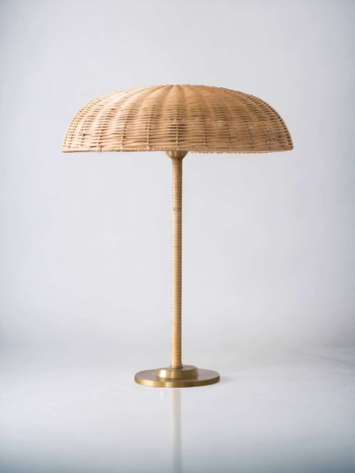 • 1× lampa stołowa mosiężna z rattanowym kloszem