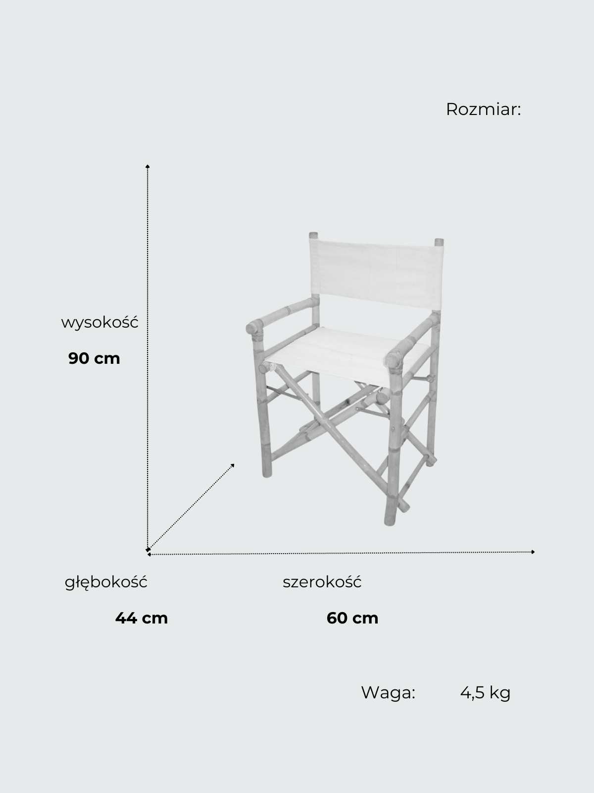 Chcesz mieć klasyczny design w nowoczesnej odsłonie? Wybierz nasze krzesło reżyserskie wykonane z bambusa. Idealne wymiary 60x44x90 cm, łatwość składania oraz zdejmowane płócienne siedzisko czynią je niezbędnym na tarasie lub w innych miejscach. Bądź gotowy na każdą okazję.