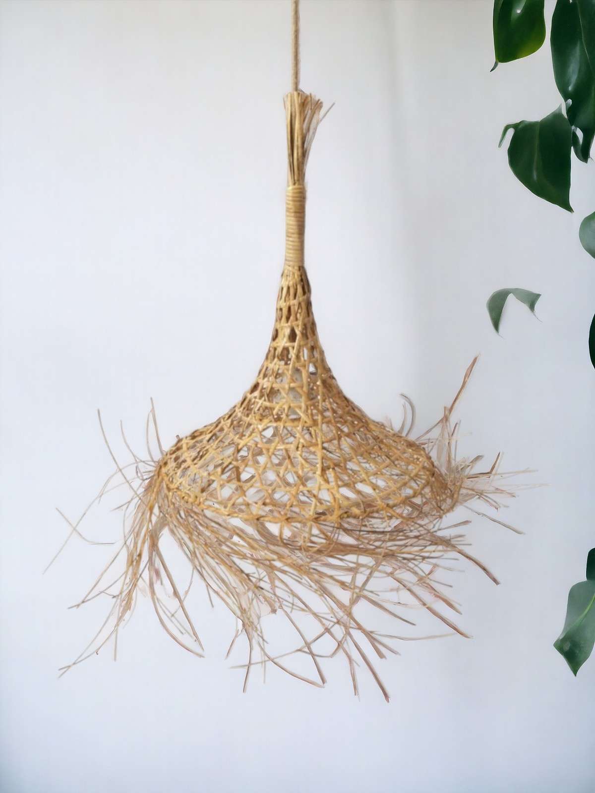 • ręcznie pleciony abażur z rattanu z dodatkiem sizalowych włosów