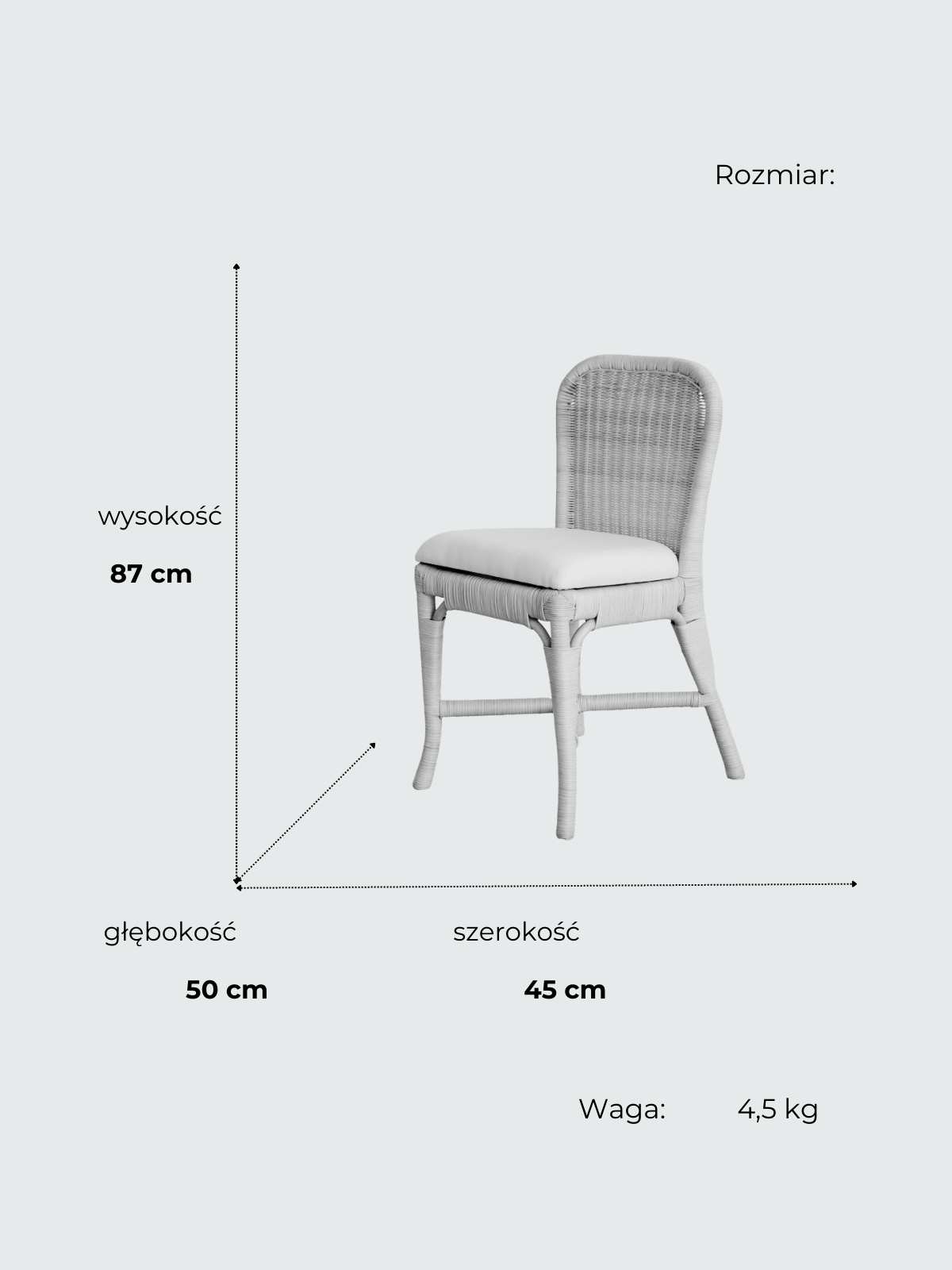 • Trwałość – Rattan, z którego wykonano krzesło, gwarantuje jego długą żywotność i odporność na uszkodzenia.