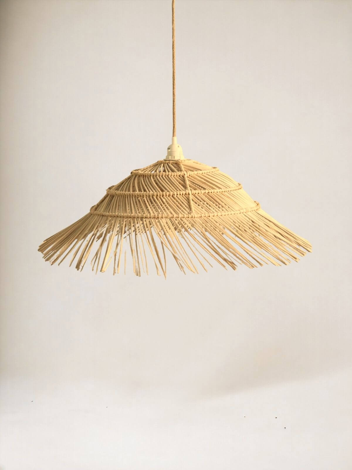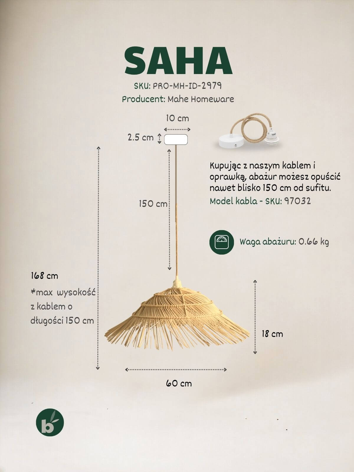 Lampa jak słoma wisząca Saha to idealny sposób na dodanie letniego, boho charakteru do Twojego wnętrza. To przykład lampy boho, która świetnie komponuje się z innymi naturalnymi elementami dekoracyjnymi, takimi jak rośliny doniczkowe, drewniane meble i tekstylia z naturalnych materiałów.