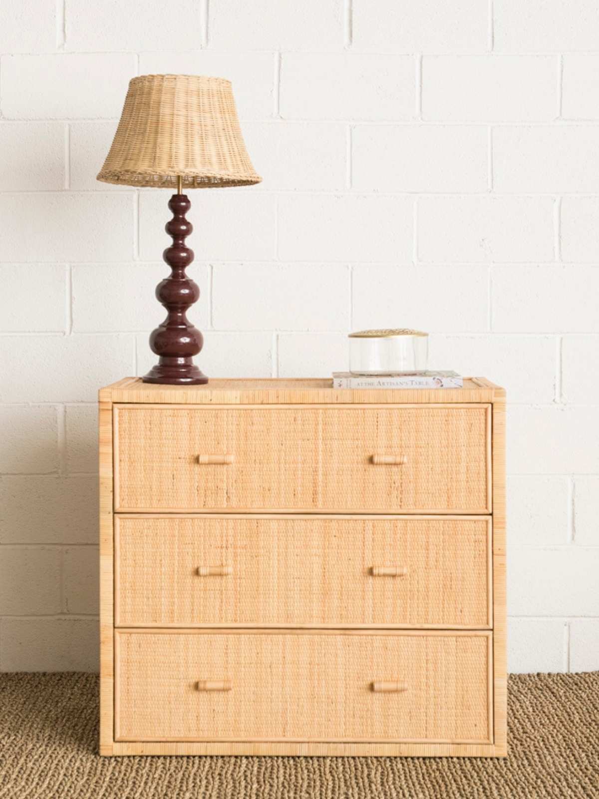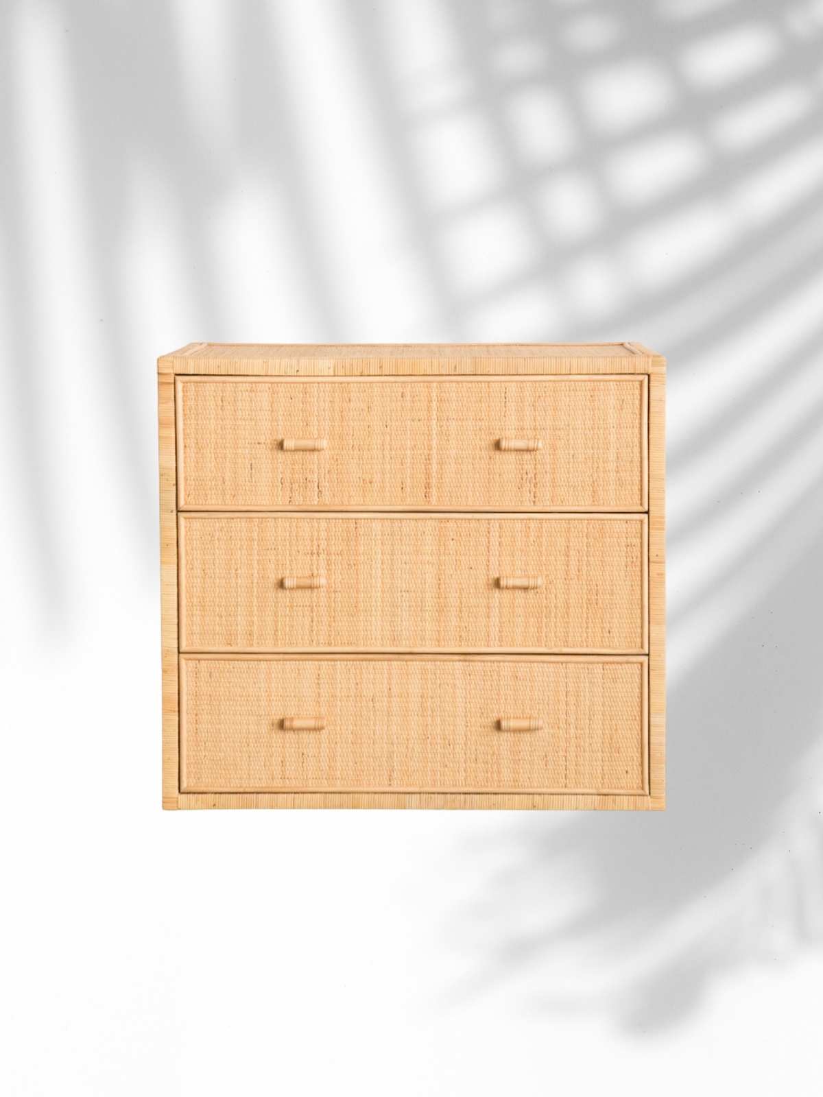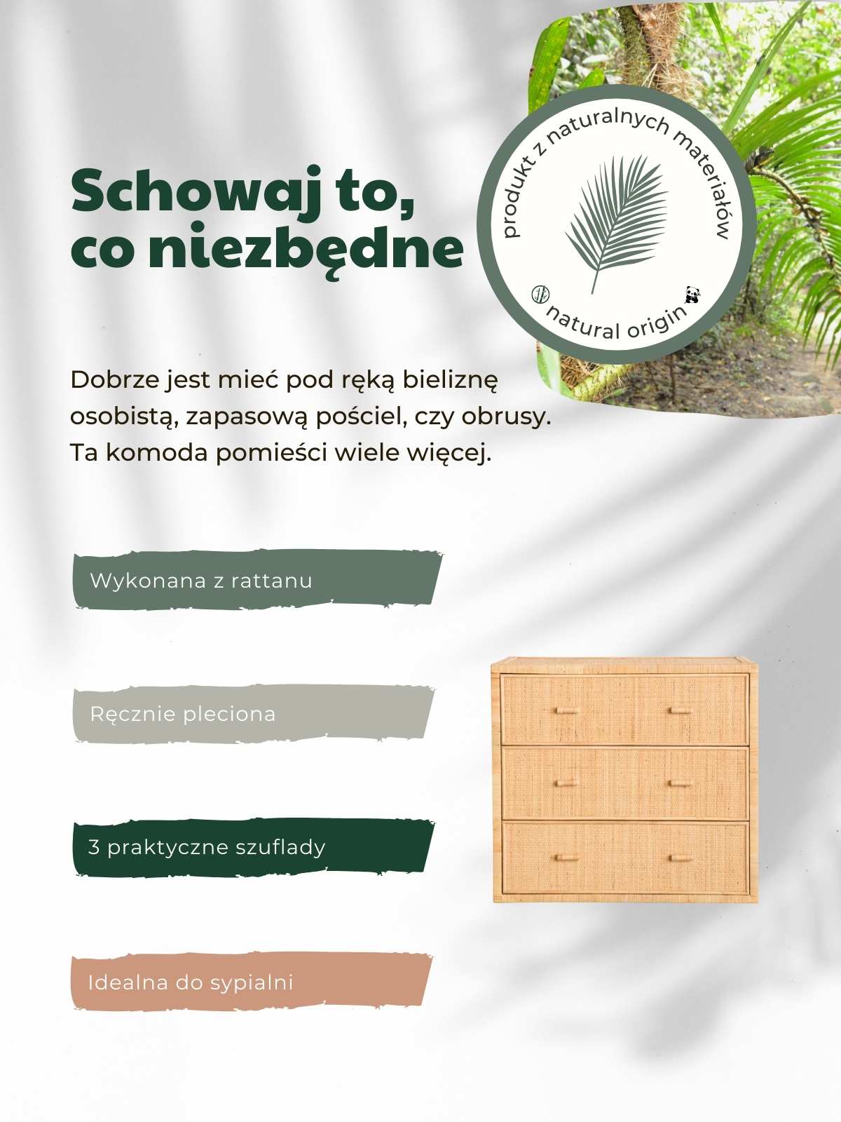 Odkryj styl i funkcjonalność z rattanową komodą Simone! 3 praktyczne szuflady, ręcznie wykonane detale. Idealna do każdego wnętrza.
