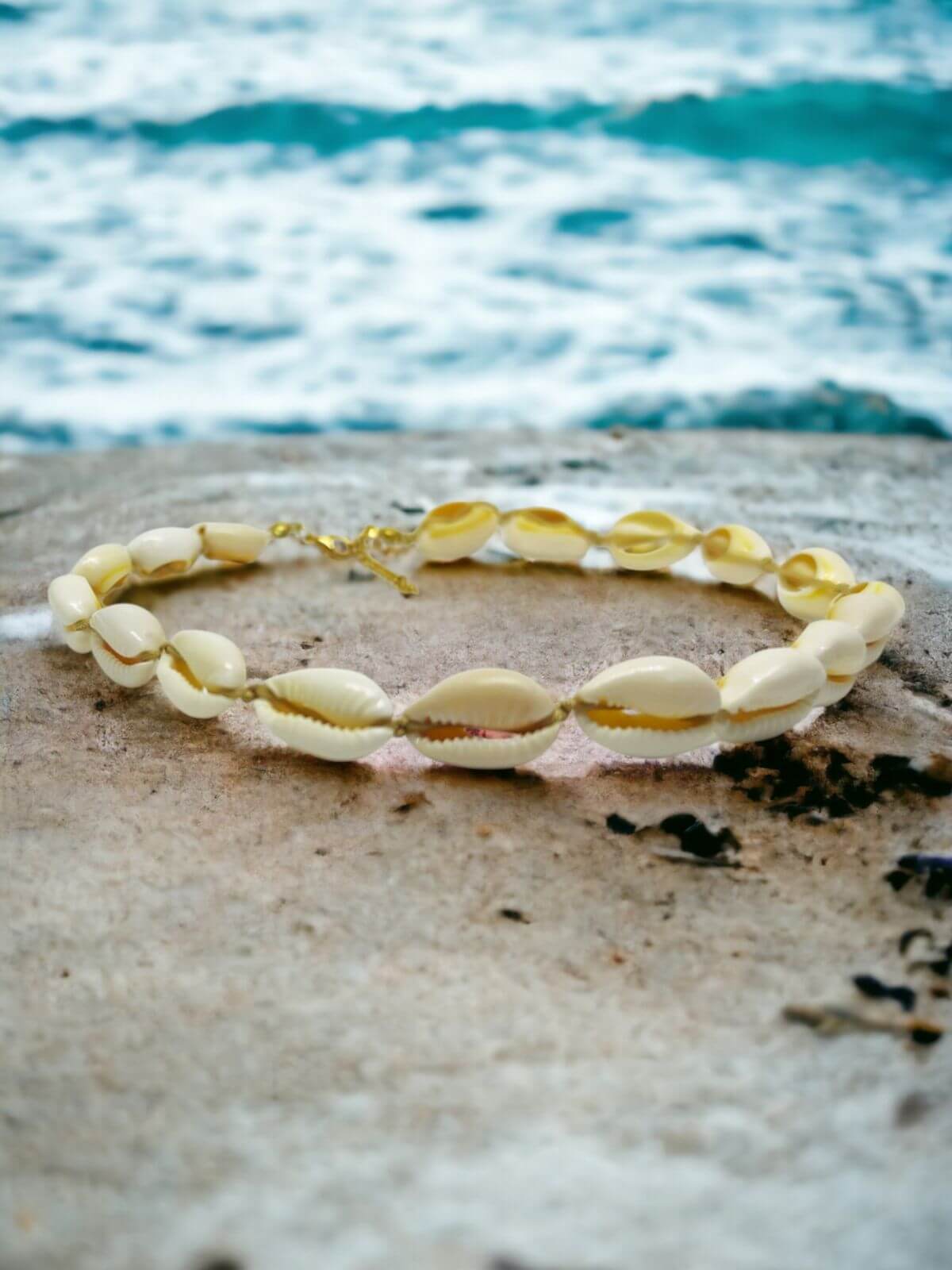 Calm Shores to kolekcja biżuterii inspirowanej spokojem i harmonią nadmorskich wybrzeży. Wykonana ze sznurka i małych muszelek kauri, ta kolekcja emanuje naturalnym urokiem i delikatnością. Bransoletki na rękę i nogę mają regulowane obwody za pomocą sznurka, co czyni je praktycznymi i łatwymi do dopasowania.